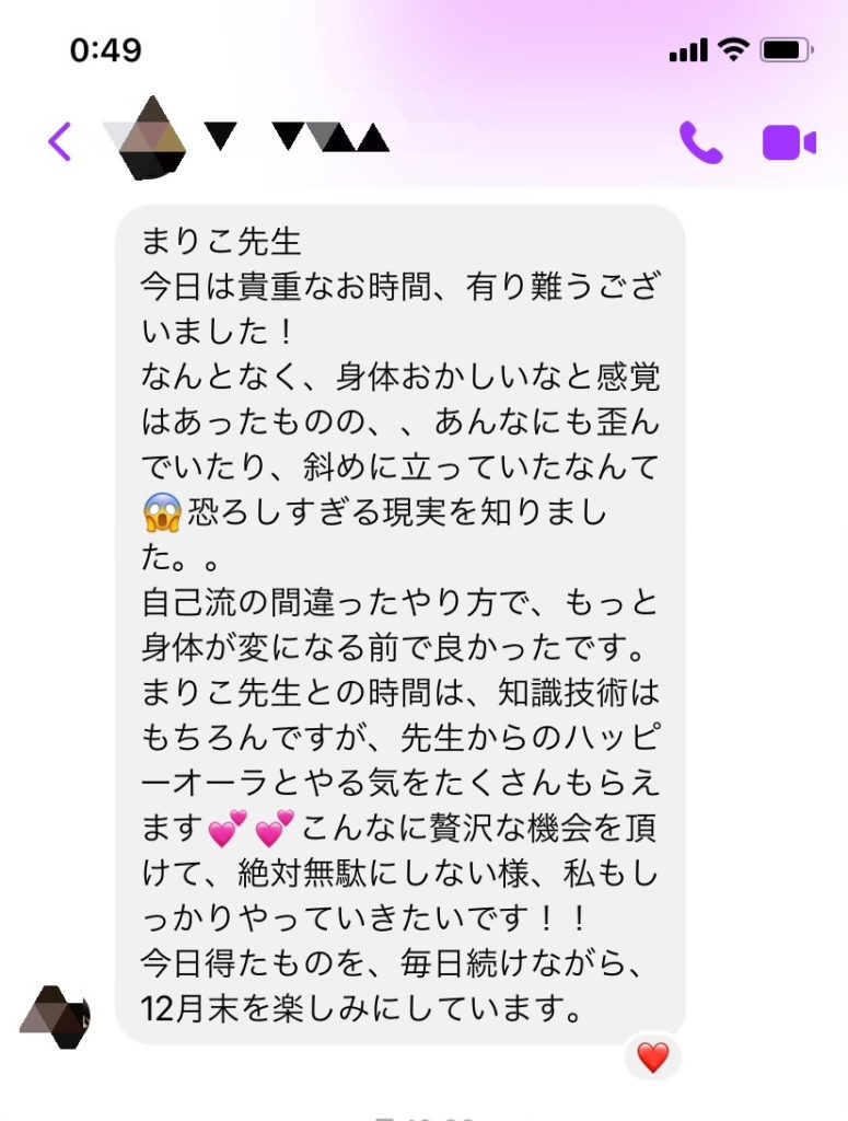私の美ボディメソッドの3日間講座に参加してくださりました。